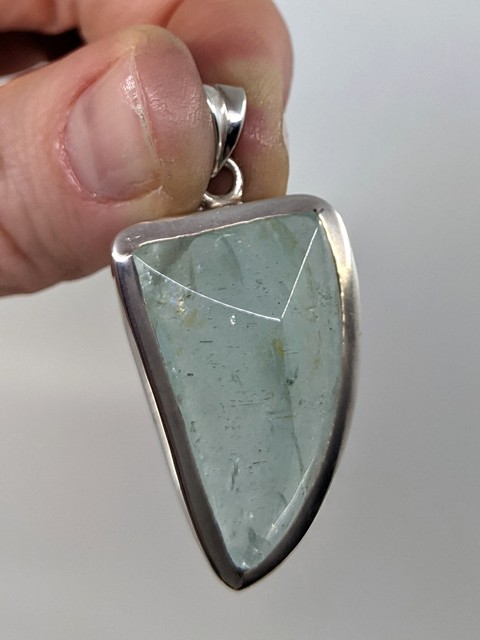 Aquamarine Pendant in Sterling Silver | Bezel Set | Freeform Cabochon with Y Shaped Facet as photographed, Blue.