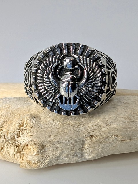 Egyptian Scarab & Ankh Ring in Sterling Silver