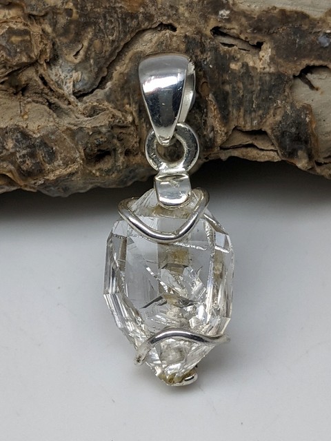Herkimer Diamond Pendant in Sterling Silver | Clear Stone.