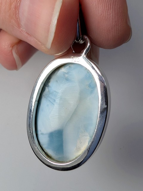 Larimar Pendant with Sterling Silver Bezel Setting | Oval Cabochon, Blues, White.