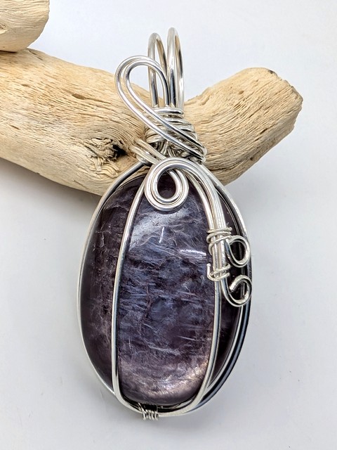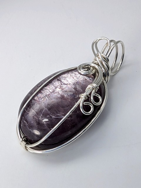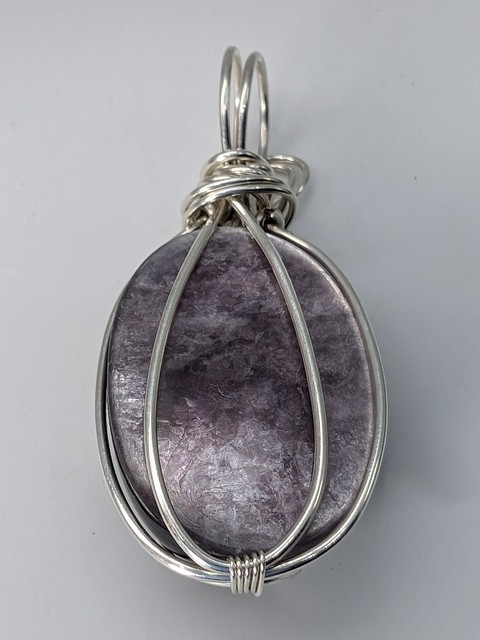 Lepidolite AAA Grade Wire Wrapped Pendant | Oval Cut Cabochon | Purple.