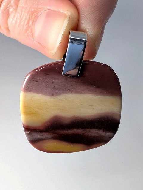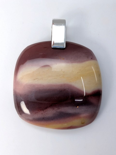 Mookaite Pendant with Sterling Silver Bail | Rounded Square Cut Cabochon, Deep Maroon, Pink, Cream, Yellow.
