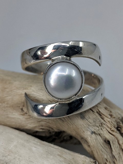 Natural Australian Sea Pearl Ring in Sterling Silver | West Australian Pearl | Size O.