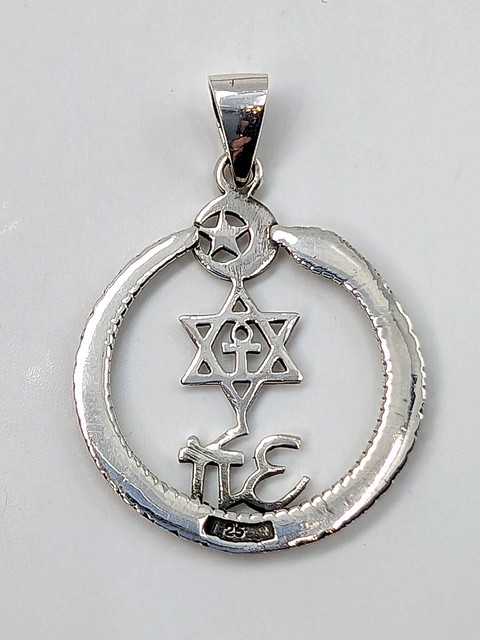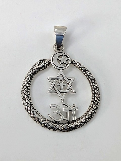 Ouroboros Multi Symbol Pendant in Sterling Silver | Includes Star of David (Hexagram), Egyptian Ankh & Om Symbol