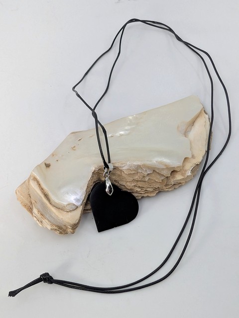 Shungite Heart Necklace, Leather | Polished on back & front of disc, sides polished to a matte finish | Heart Shaped | Black.