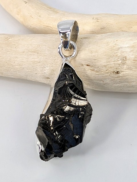 Shungite Pendant in Sterling Silver | Bezel Setting | Rough Cut | Black.